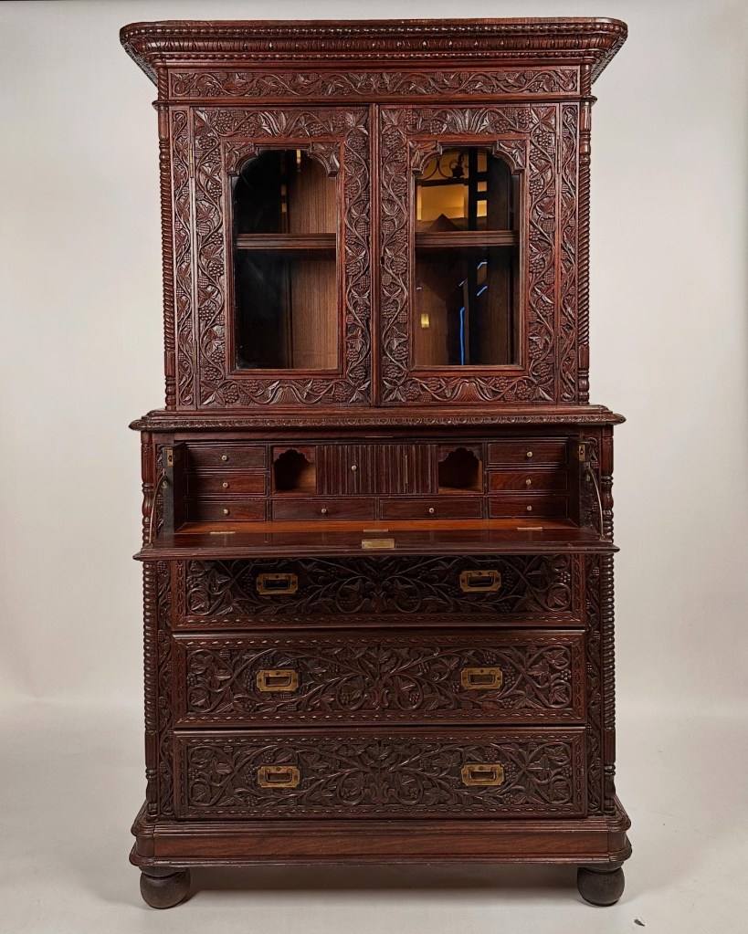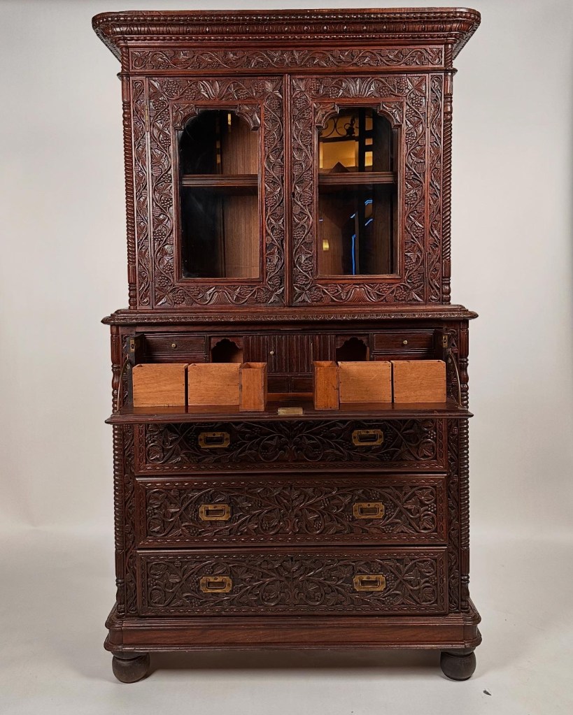 A Rare Finely Carved Anglo-Indian Drop-Front Bureau,